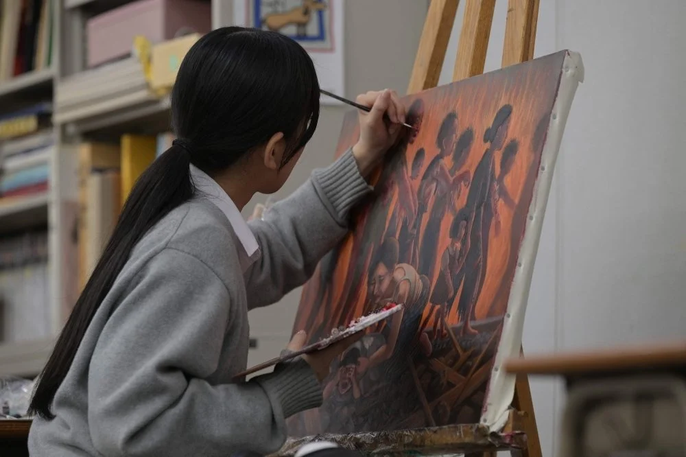 Motomachi High School Survivor Art Project. For nearly two decades, students at Motomachi High School in Hiroshima have interviewed atomic bomb survivors and translated their testimonies into paintings. This intergenerational art initiative transforms memory into action, giving voice to those who endured and creating a bridge of empathy and understanding for new generations.